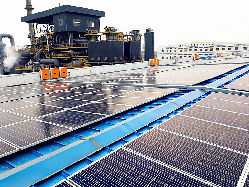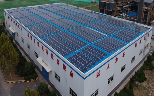 本項目建于咸陽(yáng)新興紡織工業(yè)園紡織三路陜西煤化咸陽(yáng)新型熱能有限公司物料倉屋頂上,屋面長(cháng)為80米,寬為48米。光伏電站裝機容量為500kW,年發(fā)電量約為50萬(wàn)度。